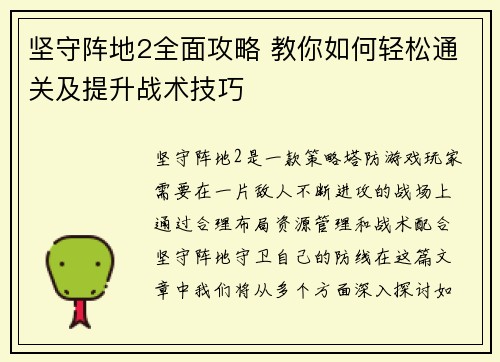 《保卫萝卜4绿野奇缘》第17关是一关具有挑战性的防守关卡,需要玩家综合运用塔防策略来应对不同的敌人类型。在这一关中,敌人的波次不断升级,各种强力怪物陆续出现,玩家必须根据战场局势不断调整防御策略,以保证萝卜的安全。在这篇攻略文章中,我们将从四个方面深入分析如何轻松突破《保卫萝卜4绿野奇缘》第17关的...
